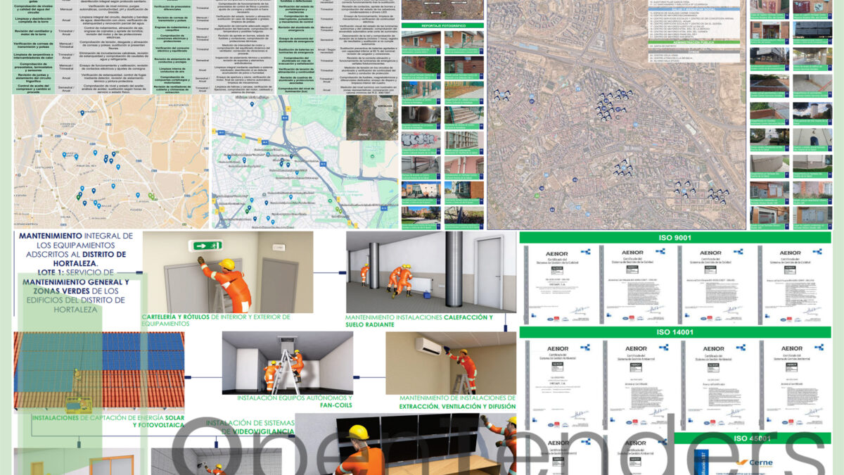 MANTENIMIENTO TÉCNICO INTEGRAL, CONSERVACIÓN Y REPARACIÓN NECESARIOS PARA EL NORMAL FUNCIONAMIENTO DE LAS ACTIVIDADES QUE SE DESARROLLEN EN LOS EDIFICIOS, POLIDEPORTIVOS E INSTALACIONES DEPORTIVAS BÁSICAS Y OTRAS AL AIRE LIBRE Y EN LOS COLEGIOS PÚBLICOS Y ESCUELAS INFANTILES, DEL DISTRITO DE HORTALEZA, ASÍ COMO LOS ESPACIOS LIBRES DE PARCELA Y SUS ZONAS VERDES. 3 LOTES
