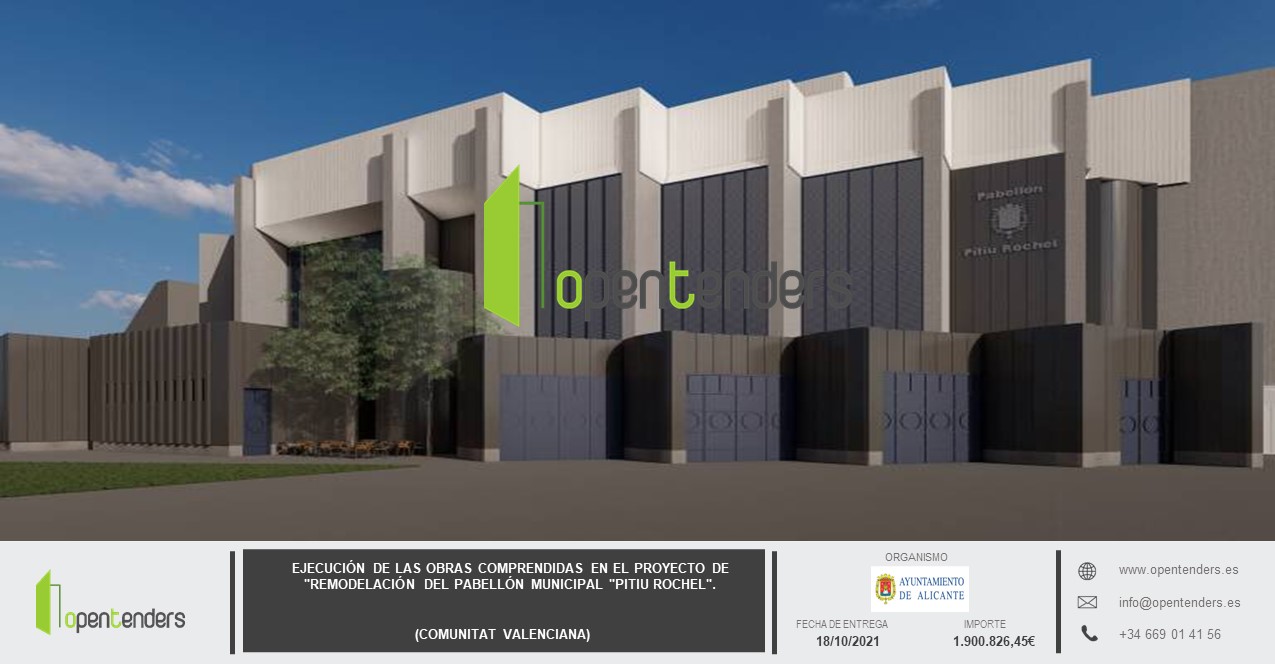 En OpenTenders hemos colaborado en la redacción de la Documentación Técnica para una licitación del AYUNTAMIENTO DE ALICANTE, cuya Puntuación ha quedado entre las primeras, en la siguiente obra: