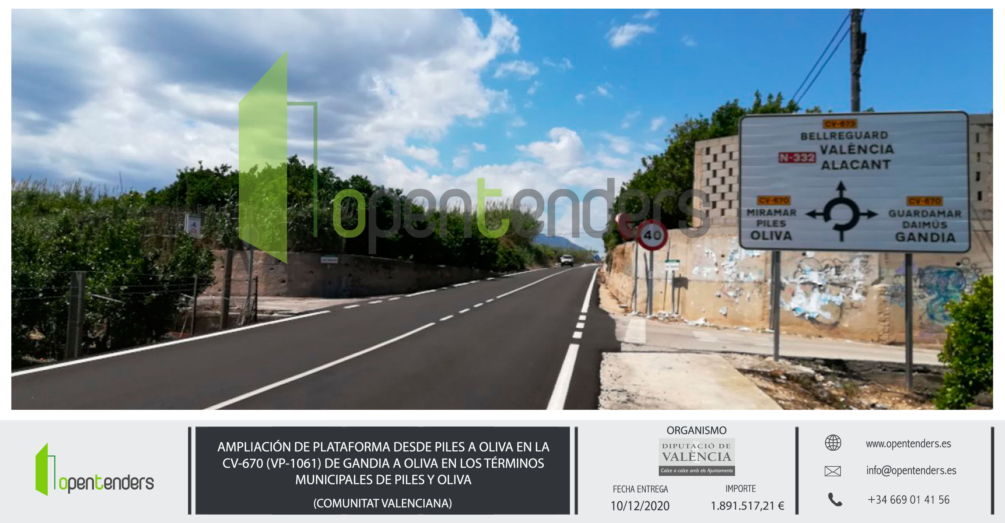 AMPLIACIÓN DE PLATAFORMA DESDE PILES A OLIVA EN LA CV-670 (VP-1061) DE GANDÍA A OLIVA EN LOS TÉRMINOS MUNICIPALES DE PILES Y OLIVA.