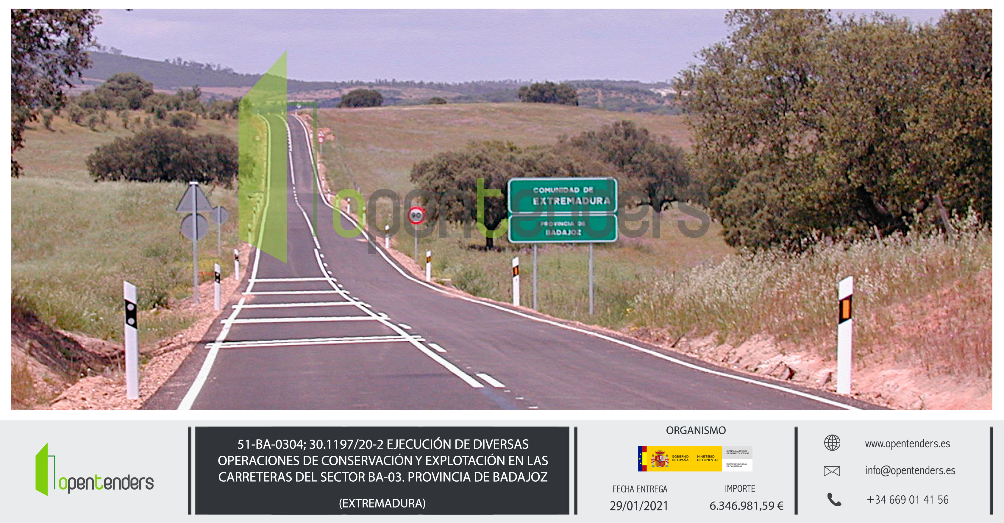 51-BA-0304; 30.1197/20-2 EJECUCIÓN DE DIVERSAS OPERACIONES DE CONSERVACIÓN Y EXPLOTACIÓN EN LAS CARRETERAS DEL SECTOR BA-03. PROVINCIA DE BADAJOZ