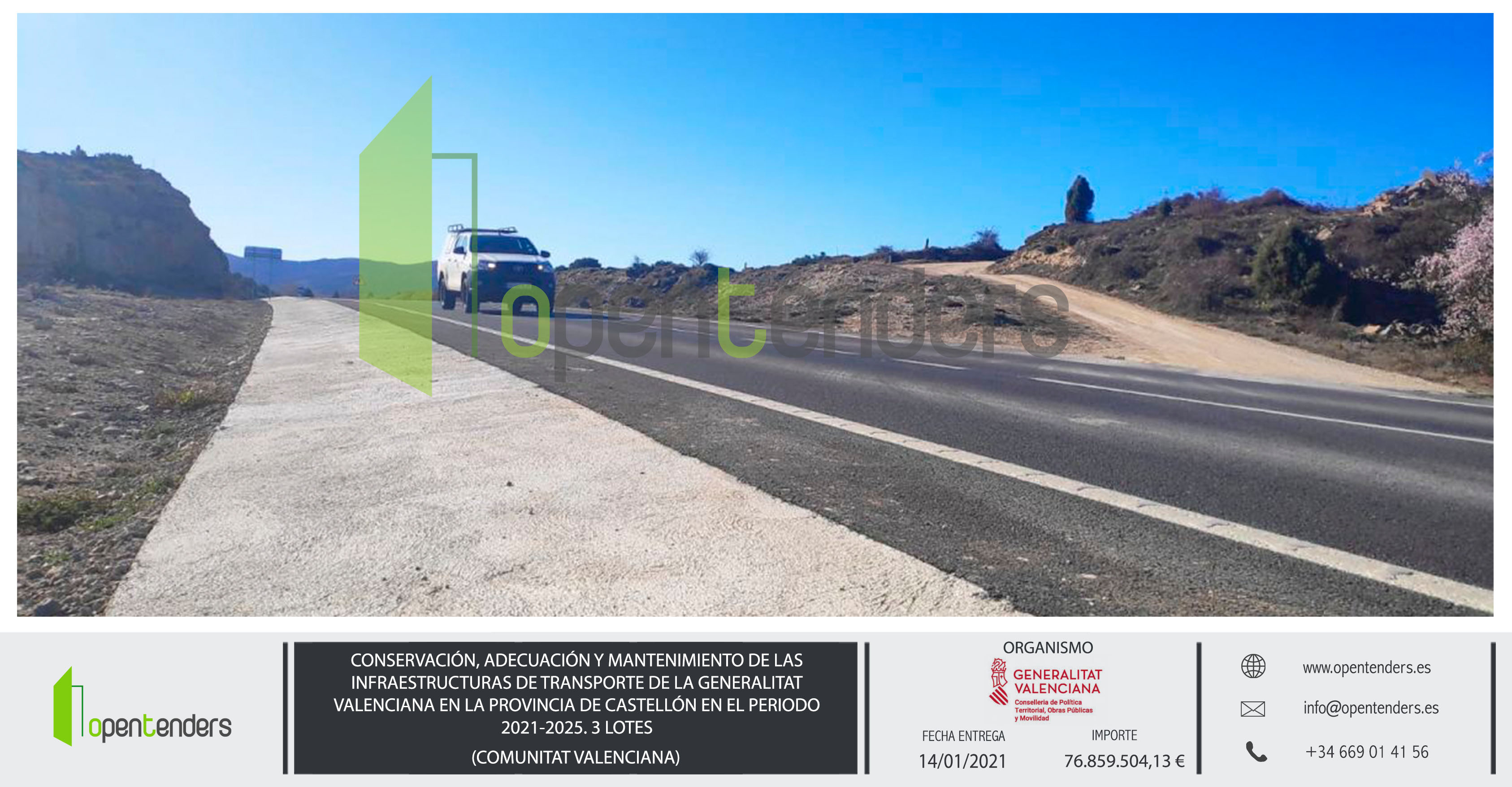 CONSERVACIÓN, ADECUACIÓN Y MANTENIMIENTO DE LAS INFRAESTRUCTURAS DE TRANSPORTE DE LA GENERALITAT VALENCIANA EN LA PROVINCIA DE CASTELLÓN EN EL PERIODO 2021-2025. 3 LOTES.