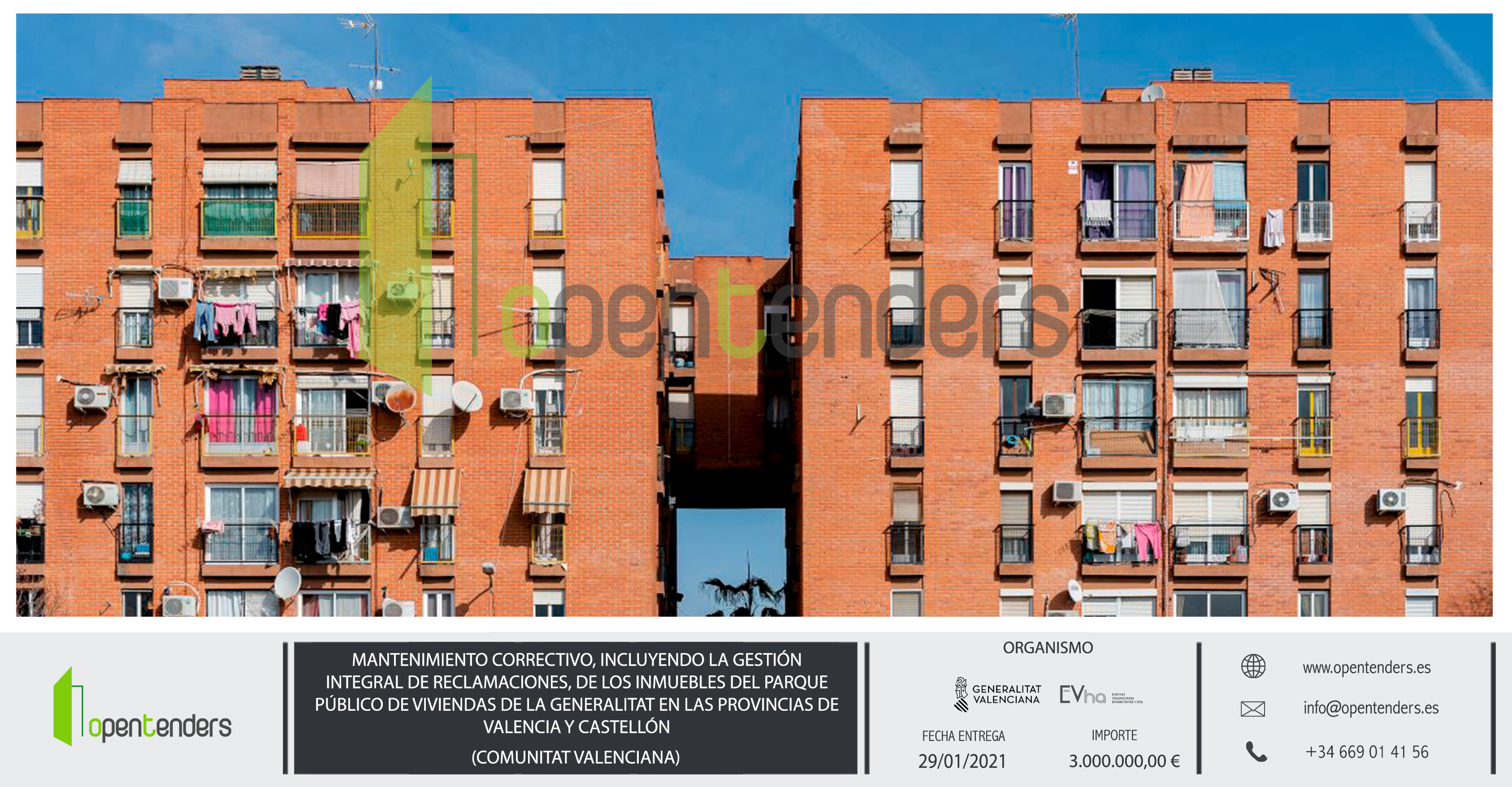 MANTENIMIENTO CORRECTIVO, INCLUYENDO LA GESTIÓN INTEGRAL DE RECLAMACIONES DE LOS INMUEBLES DEL PARQUE PÚBLICO DE VIVIENDAS DE LA GENERALITAT EN LAS PROVINCIAS DE VALENCIA Y CASTELLÓN