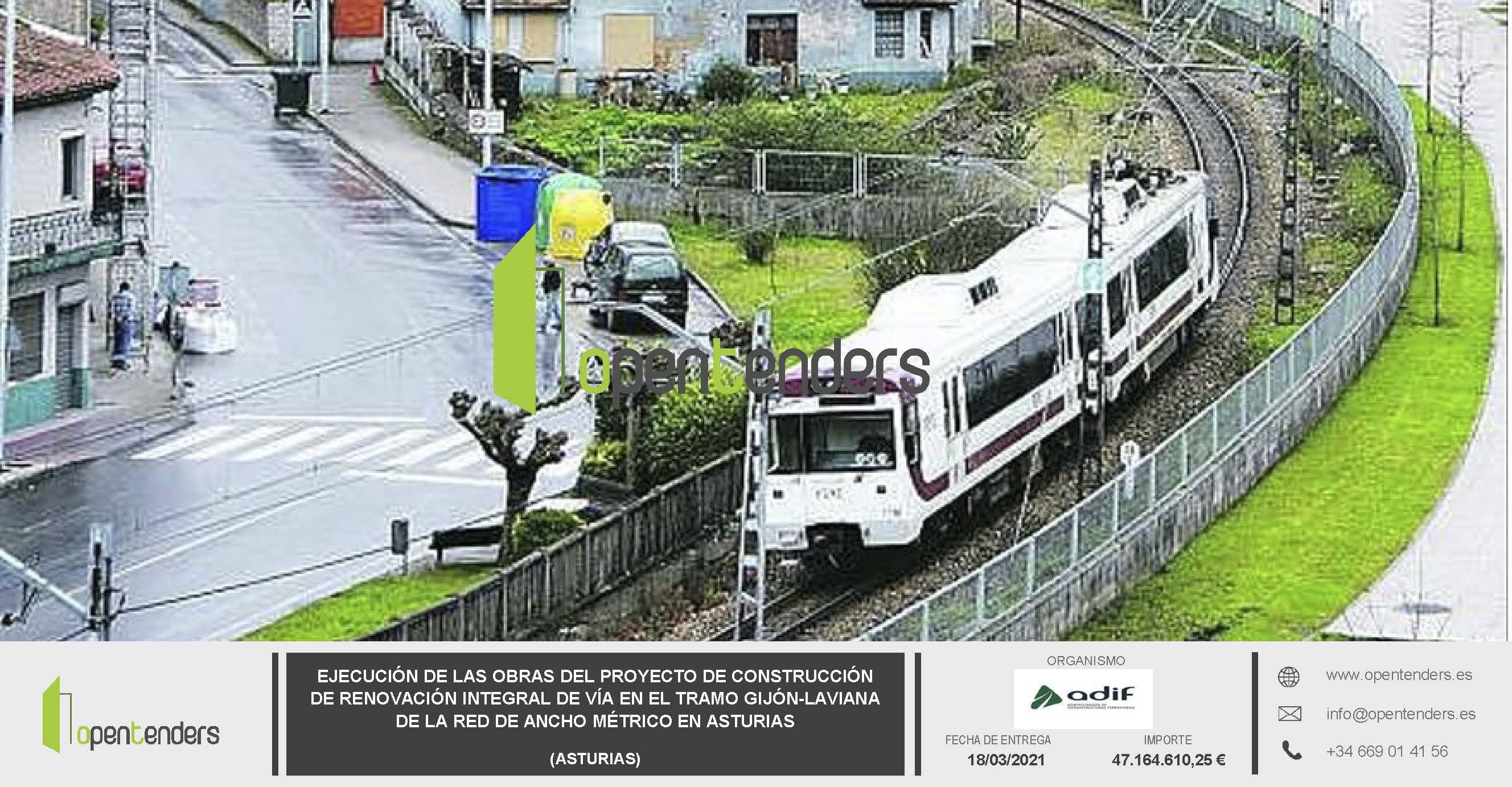 EJECUCIÓN DE LAS OBRAS DEL PROYECTO DE CONSTRUCCIÓN DE RENOVACIÓN INTEGRAL DE VÍA EN EL TRAMO GIJÓN-LAVIANA DE LA RED DE ANCHO MÉTRICO EN ASTURIAS