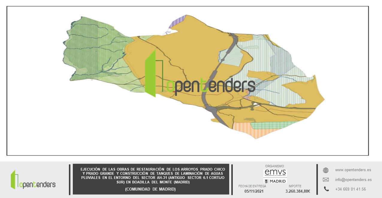 EJECUCIÓN DE LAS OBRAS DE RESTAURACIÓN DE LOS ARROYOS PRADO CHICO Y PRADO GRANDE Y CONSTRUCCIÓN DE TANQUES DE LAMINACIÓN DE AGUAS PLUVIALES EN EL ENTORNO DEL SECTOR AH-31 (ANTIGUO SECTOR 6.1 CORTIJO SUR) EN BOADILLA DEL MONTE (MADRID).