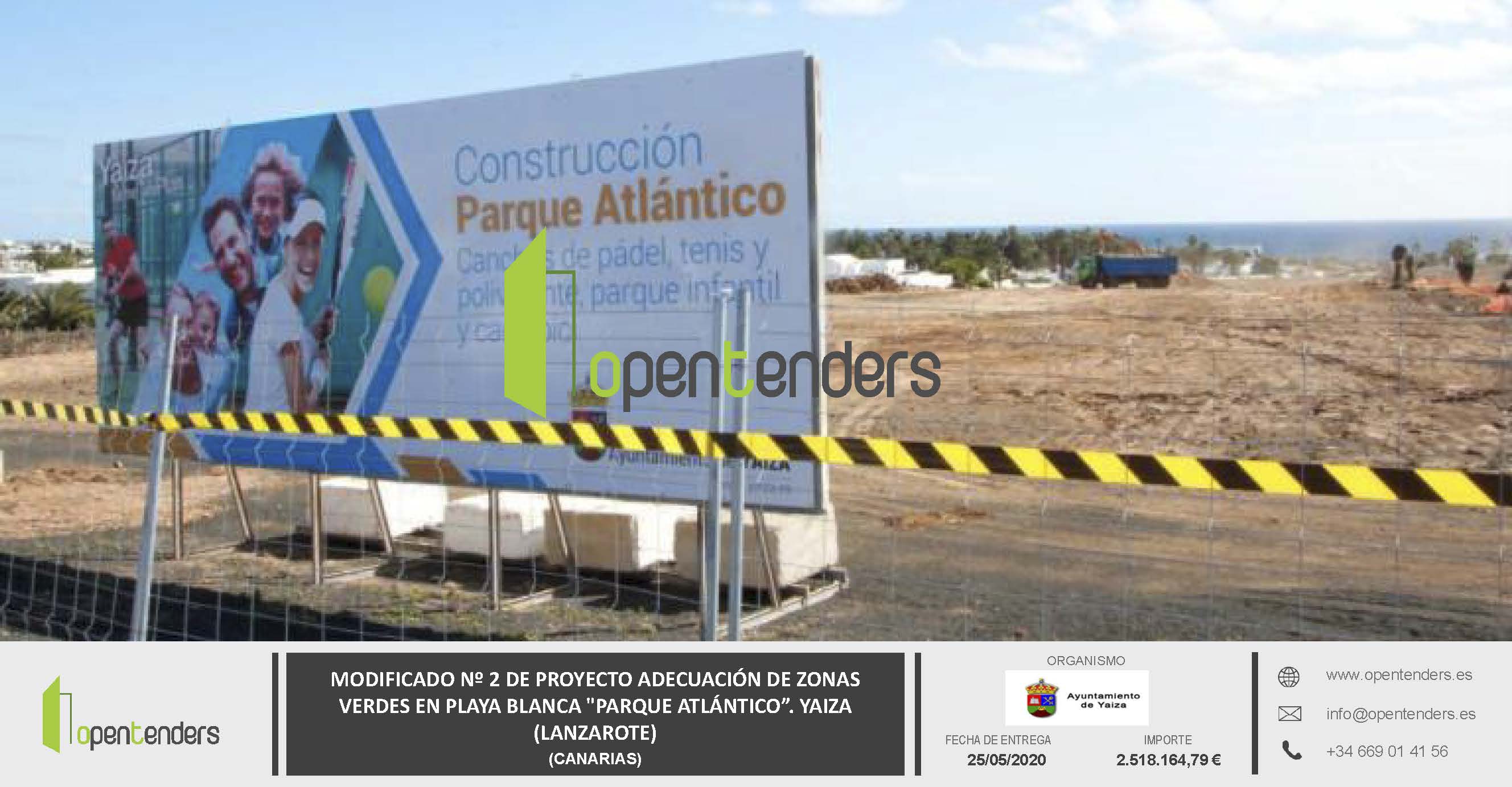MODIFICADO Nº 2 DE PROYECTO ADECUACIÓN DE ZONAS VERDES EN PLAYA BLANCA «PARQUE ATLÁNTICO», EN YAIZA (LANZAROTE)
